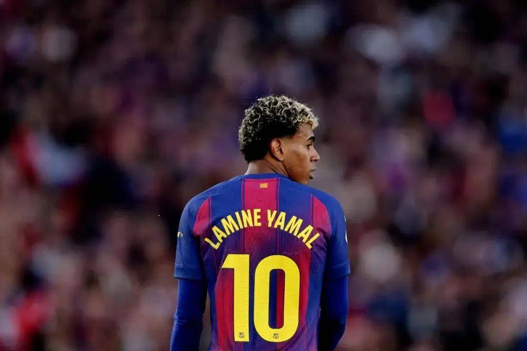 这支巴萨阵中,头号球星自然是18岁的锋线超新星亚马尔,身价高达2亿欧元,与哈兰德、姆巴佩足坛新绝代双骄并列世界第一。上赛季,亚马尔就被视为金球奖最大热门之一,最终排名第二。本赛季,亚马尔却没什么进步,在莱万老迈进球产量锐减,拉菲尼亚屡屡因伤缺阵的情况下,他无力向当年的梅西那样扛起巴萨前行。